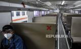Petugas membersihkan gerbong kereta api di Stasiun Bandung, Kota Bandung, Jumat (2/7). Pemerintah akan menerapkan Pemberlakuan Pembatasan Kegiatan Masyarakat (PPKM) Darurat di Pulau Jawa dan Bali mulai 3 Juli mendatang, salah satunya membatasi jumlah penumpang kereta api maksimal 70 persen dari kapasitas serta pelaku perjalanan jarak jauh harus menunjukkan kartu vaksin dan keterangan negatif swab antigen maksimal satu hari sebelum keberangkatan. Foto: Republika/Abdan Syakura (FOTO : REPUBLIKA/ABDAN SYAKURA)