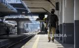 Calon penumpang menunggu kereta api lokal Bandung Raya di Stasiun Bandung, Kota Bandung, Jumat (2/7). Pemerintah akan menerapkan Pemberlakuan Pembatasan Kegiatan Masyarakat (PPKM) Darurat di Pulau Jawa dan Bali mulai 3 Juli mendatang, salah satunya membatasi jumlah penumpang kereta api maksimal 70 persen dari kapasitas serta pelaku perjalanan jarak jauh harus menunjukkan kartu vaksin dan keterangan negatif swab antigen maksimal satu hari sebelum keberangkatan. Foto: Republika/Abdan Syakura (FOTO : REPUBLIKA/ABDAN SYAKURA)