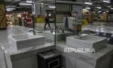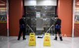 Pekerja membersihkan lantai di dekat toko yang tutup sementara di Bandung Indah Plaza, Jalan Merdeka, Kota Bandung, Jumat (2/7). Pemerintah akan menerapkan Pemberlakuan Pembatasan Kegiatan Masyarakat (PPKM) Darurat di Pulau Jawa dan Bali mulai 3 Juli mendatang, salah satunya menutup sementara mal dan pusat perbelanjaan kecuali akses untuk restoran, supermarket dan pasar swalayan tetap diperbolehkan. (FOTO : REPUBLIKA/ABDAN SYAKURA)