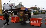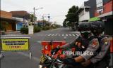 Polisi menjaga kawasan yang aksesnya ditutup menggunakan barrier di Kota Madiun, Jawa Timur, Sabtu (3/7/2021). Sejumlah akses menuju kawasan di wilayah itu ditutup dalam rangka penerapan Pemberlakuan Pembatasan Kegiatan Masyarakat (PPKM) Darurat untuk membatasi mobilitas warga guna pengendalian penyebaran COVID-19. (FOTO : Antara/Siswowidodo)
