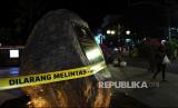 REPUBLIKA.CO.ID,MADIUN -- Warga berjalan di kawasan pedestrian yang dipasang pita garis larangan melintas di kawasan wisata kota taman Sumber Wangi Kota Madiun, Jawa Timur, Sabtu (3/7/2021) malam.