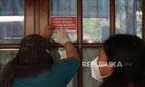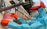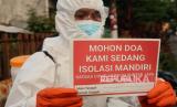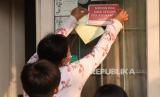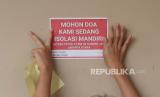 REPUBLIKA.CO.ID, JAKARTA -- Rumah warga yang sedang melakukan isolasi mandiri akibat terpapar Covid-19 dipasangi tanda stiker khusus di lingkungan Komplek Depkes RW 04 Sunter Jaya, Jakarta, Ahad (4/7). Penempelan stiker bertuliskan Mohon Doa Kami Sedang Isolasi Mandiri, bertujuan untuk mempermudah pengawasan dan pendataan Satgas Covid 19 di lingkungan tersebut.