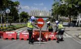 REPUBLIKA.CO.ID, KAB BANDUNG -- Petugas kepolisian melakukan penutupan jalan protokol di Jalan Al-Fathu, Soreang, Kabupaten Bandung, Ahad (4/7). Pemerintah Kabupaten Bandung melalui Polresta Bandung menerapkan kebijakan buka tutup di sejumlah ruas jalan protokol sebagai tindak lanjut dari penerapan Pemberlakuan Pembatasan Kegiatan Masyarakat (PPKM) Darurat. Penutupan tersebut bertujuan untuk menekan mobilitas masyarakat sekaligus meminimalisir warga luar masuk ke Kabupaten Bandung demi mencegah penyebaran Covid-19.