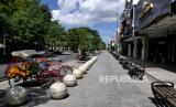 REPUBLIKA.CO.ID, YOGYAKARTA -- Jalur pedestrian kosong imbas penutupan akses masuk Malioboro, Yogyakarta, Senin (5/7). Polresta Yogyakarta menutup akses jalan masuk menuju Malioboro sejak Senin (5/7) pagi. Hal ini untuk mendukung PPKM Darurat, penutupan ini rencananya berlangsung hingga 20 Juli mendatang. Kawasan Malioboro saat ini menjadi salah satu destinasi paling favorit bagi wisatawan.