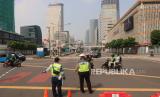REPUBLIKA.CO.ID, JAKARTA -- Water barrier terpasang di kawasan bisnis Jl Jend Sudirman, Jakarta, Senin (5/7). Penutupan jalan ini karena Pemberlakukan Pembatasan Kegiatan Masyarakat (PPKM) Darurat yang akan berlangsung hingga 20 Juli mendatang.