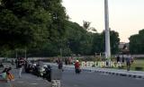 Warga masih mendatangi alun-alun meski pedagang kaki lima di lokasi tutup semua. .