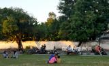 Warga bersantai saat sore di Alun-alun Selatan Yogyakarta, Senin (5/7). Saat PPMK Darurat pedagang kaki lima di Alun-alun Selatan ditutup semua. Namun, warga masih banyak yang beraktifitas. Tidak hanya berolahraga, warga juga banyak yang sekadar bersantai saat sore. (FOTO : Wihdan Hidayat / Republika)