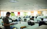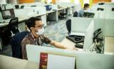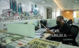 REPUBLIKA.CO.ID,JAKARTA -- Aktivitas pekerja di gedung perkantoran perbankan pada masa penerapan PPKM Darurat menerapkan di Jakarta, Senin, (5/7).