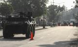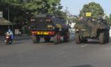 Petugas Gabungan Polri dan TNI menyiapkan kendaraan taktis untuk membantu penyekatan..