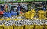 Nelayan membongkar muat ikan saat tiba di Dermaga Pelabuhan Muara Angke, Jakarta Utara, Selasa (6/7/2021). Menurut data Kementerian Kelautan dan Perikanan (KKP), sektor kelautan dan perikanan mencatatkan kinerja positif selama lima bulan awal 2021, naik sebesar 3,72 persen dibanding periode yang sama tahun sebelumnya dengan catatan neraca perdagangan surplus sebesar 1,9 miliar Dolar AS atau setara dengan Rp27 triliun. (FOTO : ANTARA FOTO/M Risyal Hidayat)