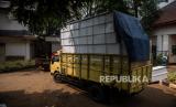 Mobil truk membawa peti jenazah untuk didistribusikan ke rumah sakit di TPU Petamburan, Jakarta, Selasa (6/7). Pemprov DKI Jakarta melalui Dinas Pertamanan dan Hutan menyediakan peti jenazah secara gratis untuk rumah sakit dan pasien covid-19 di seluruh DKI Jakarta. Dalam satu hari sebanyak 100-200 peti jenazah didistribusikan ke sejumlah rumah sakit di DKI Jakarta. Republika/Thoudy Badai (FOTO : Republika/Thoudy Badai)
