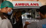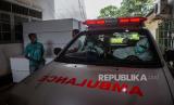 Petugas memasukan peti jenazah kedalam mobil ambulan untuk didistribusikan ke rumah sakit di TPU Petamburan, Jakarta, Selasa (6/7). Pemprov DKI Jakarta melalui Dinas Pertamanan dan Hutan menyediakan peti jenazah secara gratis untuk rumah sakit dan pasien covid-19 di seluruh DKI Jakarta. Dalam satu hari sebanyak 100-200 peti jenazah didistribusikan ke sejumlah rumah sakit di DKI Jakarta. Republika/Thoudy Badai (FOTO : Republika/Thoudy Badai)