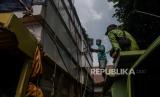 Petugas memasukan peti jenazah covid-19 untuk didistribusikan ke rumah sakit di TPU Petamburan, Jakarta, Selasa (6/7). Pemprov DKI Jakarta melalui Dinas Pertamanan dan Hutan menyediakan peti jenazah secara gratis untuk rumah sakit dan pasien covid-19 di seluruh DKI Jakarta. Dalam satu hari sebanyak 100-200 peti jenazah didistribusikan ke sejumlah rumah sakit di DKI Jakarta. Republika/Thoudy Badai (FOTO : Republika/Thoudy Badai)