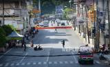 Suasana lengang di salah satu tempat yang biasa dipadati pengunjung yaitu Jalan Asia Afrika, kawasan Alun-alun Kota Bandung, saat penutupan sementara di masa Pemberlakuan Pembatasan Kegiatan Masyarakat (PPKM) Darurat, Selasa (6/7). Penutupan sejumlah ruas jalan dan aktivitas perdagangan di pusat Kota Bandung, dalam rangka PPKM Darurat sebagai upaya mencegah penyebaran Covid-19. (FOTO : Edi Yusuf/Republika)