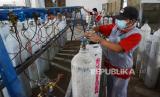 REPUBLIKA.CO.ID, BANDUNG -- Kesibukan pegawai menyiapkan pasokan oksigen untuk medis di suplayer oksigen Samator Group, di Kota Bandung, Rabu (7/7. Pemkot Bandung memastikan kebutuhan oksigen untuk medis di Kota Bandung bisa terpenuhi.