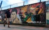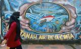 REPUBLIKA.CO.ID, AMBON -- Warga mengenakan masker saat berjalan di dekat sebuah mural di Kota Ambon, Maluku, Rabu (7/7/2021). Berdasarkan data Satgas Percepatan Penanggulangan COVID-19 Maluku, per 7 Juli Kota Ambon kembali masuk ke zona merah atau risiko tinggi penularan COVID-19 dengan jumlah kasus kumulatif 1.082 orang sehingga Pemkot Ambon akan menerapkan Pemberlakuan Pembatasan Kegiatan Masyarakat (PPKM) Mikro mulai 8 hingga 21 Juli 2021.