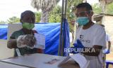 REPUBLIKA.CO.ID, Pemilih mengantre untuk dipanggil mencoblos saat Pemungutan Suara Ulang (PSU) Pilkada Sabu Raijua di Seba, Kabupaten Sabu Raijua, NTT, Rabu (7/7/2021). Komisi Pemilihan Umum (KPU) Sabu Raijua kembali mengelar PSU untuk memilih bupati dan wakil bupati setelah Mahkamah Konstitusi membatalkan kemenangan bupati terpilih Orient Riwu Kore karena berstatus kewarganegaraan ganda.