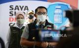 REPUBLIKA.CO.ID,BANDUNG -- Gubernur Jawa Barat Ridwan Kamil (Emil) meninjau Gebyar 5.000 Vaksinasi Massal untuk Warga ber-KTP Kota Bandung, di Kampus Itenas, Jalan PHH Mustofa, Rabu (7/7).