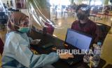 REPUBLIKA.CO.ID,JAKARTA -- Petugas kesehatan mengecek data warga sebelum mendapatkan vaksin COVID-19 di salah satu mal kawasan Pantai Indah Kapuk (PIK), Jakarta Utara, Rabu (7/7/2021).