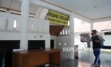 REPUBLIKA.CO.ID,BOGOR -- Petugas menyemprotkan cairan disinfektan di Meunasah Aceh Malikussaleh, Kelurahan Cimahpar, Kota Bogor, Jawa Barat, Rabu (7/7/2021).