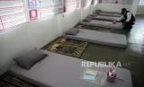 Lurah Cimahpar menyiapkan perlengkapan mandi di ruang isolasi bagi pasien COVID-19 di Aula Meunasah Aceh Malikussaleh, Kelurahan Cimahpar, Kota Bogor, Jawa Barat, Rabu (7/7/2021). Pemerintah Kota Bogor menambah tempat isolasi atau tempat tidur untuk pasien COVID-19 menjadi 535 tempat tidur yang tersebar di pusat isolasi berbasis wilayah yang berada di Kelurahan se-Kota Bogor dan kerja sama dengan pihak lain. (FOTO : ANTARA/Arif Firmansyah)