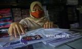 REPUBLIKA.CO.ID, JAKARTA -- Pedagang menata seragam sekolah di toko perlengkapan sekolah Pasar Agung, Depok, Jawa Barat, Kamis (8/7). Pedagang seragam mengeluhkan sepinya omzet mereka pada tahun ajaran baru ini.