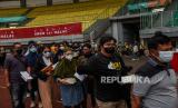 REPUBLIKA.CO.ID,BEKASI -- Warga mengantre sebelum menjalani vaksin covid-19 Sinovac saat vaksinasi massal di Stadion Patriot Chandrabhaga, Bekasi Selatan, Kota Bekasi, Jawa Barat, Kamis (8/7).