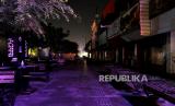Suasana malam di kawasan wisata Malioboro, Yogyakarta, Kamis (8/7) malam. Sejak pemberlakuan PPKM Darurat dilakukan penutupan akses menuju Malioboro. Selain itu, setiap jam delapan malam lampu penerangan akan dimatikan. Hal ini dilakukan untuk menekan penyebaran kasus Covid-19. (FOTO : Wihdan Hidayat / Republika)