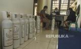 REPUBLIKA.CO.ID, DEPOK -- Relawan menyiapkan tabung oksigen untuk dipinjamkan kepada warga di kawasan Grand Depok City, Depok, Jawa Barat, Jumat (9/7). Program "oksigen untuk warga" yang digagas oleh Gerakan Solidaritas Sejuta Antigen untuk Indonesia tersebut meminjamkan tabung oksigen secara gratis kepada pasien COVID-19 dengan kriteria tertentu yang sedang isolasi mandiri (isoman).
