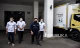 Menteri Badan Usaha Milik Negara (BUMN) Erick Thohir (tengah) didampingi Direktur Utama PT Bio Farma Honesti Basyir (kedua kanan) meninjau gudang pendistribusian vaksin saat kunjungan kerja di PT Bio Farma (Persero), Jalan Pasteur, Kota Bandung, Sabtu (10/7). Dalam kunjungan kerjanya di Bandung, Erick Thohir berkesempatan untuk memantau dan memastikan proses pendistribusian vaksin Covid-19 serta vaksin lainnya di PT Bio Farma terpantau secara baik sekaligus meninjau pelaksanaan vaksinasi Covid-19 di Stasiun Bandung. (FOTO : REPUBLIKA/ABDAN SYAKURA)
