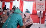 REPUBLIKA.CO.ID, JAKARTA -- Seorang warga tengah mendapatkan pelayanan vaksinasi Covid-19 di Sentra Vaksinasi Bank DKI di Kantor Layanan Juanda di Jakarta (10/07). Bank DKI telah melakukan vaksin sebanyak 3.500 orang sampai dengan akhir Juni 2021. Program Sentra Vaksin ini yang dilakukan di Juanda dan Kantor Layanan Syariah Matraman, ditargetkan akan dapat bertambah sebanyak 8.500 dosis vaksin.