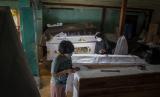 REPUBLIKA.CO.ID, SOLO -- Perajin menyelesaikan pembuatan peti jenazah di Kampung Joyosuran, Pasar Kliwon, Solo, Jawa Tengah, Sabtu (10/7). Menurut perajin permintaan peti jenazah meningkat hingga lima kali lipat dari satu peti per hari menjadi lima peti jenazah per hari sejak meningkatnya kasus COVID-19, sedangkan bahan baku peti mentah mengalami kenaikan 50 persen dari harga mulai Rp100 ribu menjadi Rp150 ribu rupiah.