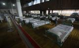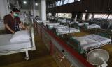 REPUBLIKA.CO.ID, SURABAYA -- Petugas kesehatan merapikan tempat tidur pasien di Rumah Sakit Lapangan Tembak (RSLT) di kawasan Kedung Cowek, Surabaya, Jawa Timur, Sabtu (10/7). Pemerintah Kota (Pemkot) Surabaya mengubah gedung lapangan tembak itu menjadi Rumah Sakit Lapangan Tembak (RSLT) khusus pasien COVID-19 dengan daya tampung seribu tempat tidur pasien namun untuk tahap awal tersedia 400 tempat tidur pasien.