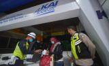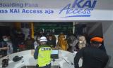 REPUBLIKA.CO.ID,PADANG -- Calon penumpang menunjukan surat tugas sebelum berangkat ke Pariaman di Stasiun Kereta Api Simpang Haru, Padang, Sumatera Barat, Senin (12/7/2021).
