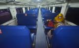 Penumpang berada di gerbong Kereta Api Sibinuang sebelum berangkat ke Pariaman di Stasiun Kereta Api Simpang Haru, Padang, Sumatera Barat, Senin (12/7/2021). PT KAI Divre II Sumbar menyatakan keberangkatan (12/7/2021) hingga (20/7/2021) selama masa PPKM darurat di kota itu, perjalanan KA lokal hanya diperbolehkan bagi calon penumpang dari sektor esensial dan sektor kritikal serta wajib menunjukkan surat tanda registrasi pekerja atau surat keterangan lainnya yang dikeluarkan oleh pemerintah daerah setempat. (FOTO : ANTARA/Iggoy el Fitra)