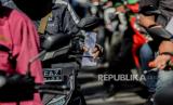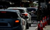 REPUBLIKA.CO.ID,JAKARTA -- Pengendara terjebak kemacetan saat pemeriksaan Surat Tanda Registrasi Pekerja (STRP) atau surat tugas di posko penyeketan Lenteng Agung, Jakarta, Senin (12/7).