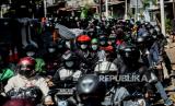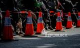 Pengendara melawan arah saat pemeriksaan Surat Tanda Registrasi Pekerja (STRP) atau surat tugas di posko penyeketan Lenteng Agung, Jakarta, Senin (12/7). Pemerintah Provinsi DKI Jakarta menetapkan Kebijakan bagi warga yang bekerja di sektor essensial, kritikal atau dalam keadaan mendesak untuk membawa Surat Tanda Registrasi Pekerja (STRP) sebagai dokumen persayaratan perjalanan pada masa PPKM Darurat hingga 20 Juli 2021 mendatang. Republika/Thoudy Badai (FOTO : Republika/Thoudy Badai)