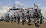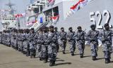 REPUBLIKA.CO.ID, TANJUNG PRIOK -- Prajurit TNI AL mengikuti upacara peresmian KRI Teluk Youtefa 522, di Dermaga Pondok Dayung,Tanjung Priok, Jakarta Utara, Senin (12/7). KRI Youtefa 522 merupakan kapal produksi dalam negeri yang dirancang dapat mengangkut MBT (Main Battle Tank) jenis Leopard dan tank BMP-3F guna memperkuat sistem Alat Utama Sistem Persenjataan (Alutsista) TNI AL.