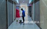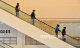 REPUBLIKA.CO.ID, JAMBI -- Pengunjung bergegas keluar di samping poster imbauan pencegahan penularan COVID-19 di pusat berbelanjaan modern, Jambi, Senin (12/7/2021). Pemerintah Kota Jambi membatasi jam operasional pusat perbelanjaan atau perdagangan di daerah itu sampai pukul 17.00 WIB dengan pembatasan kapasitas pengunjung 25 persen dan penerapan protokol kesehatan untuk mengendalikan penyebaran COVID-19.