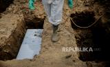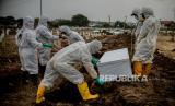 REPUBLIKA.CO.ID, JAKARTA -- Petugas menurunkan peti jenazah dari mobil ambulan untuk dimakamkan di TPU khusus Covid-19 Rorotan, Jakarta Utara, Selasa (13/7). Berdasarkan data Worldometers pada Selasa 13 Juli 2021 Indonesia menjadi negara dengan angka kasus harian terbanyak dengan penambahan kasus positif 40.427 orang dan angka kematian tertinggi di dunia bertambah 891 orang.