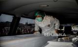Petugas ambulan menurunkan peti jenazah di TPU khusus Covid-19 Rorotan, Jakarta Utara, Selasa (13/7). Berdasarkan data Worldometers pada Selasa 13 Juli 2021 Indonesia menjadi negara dengan angka kasus harian terbanyak dengan penambahan kasus positif 40..427 orang dan angka kematian tertinggi di dunia bertambah 891 orang.  (FOTO : Republika/Thoudy Badai)