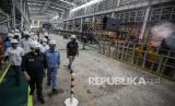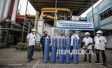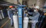 REPUBLIKA.CO.ID, CILEGON -- Petugas memeriksa tabung oksigen untuk bantuan penanganan COVID-19 di Pabrik Gas Industri Krakatau Steel, Cilegon, Banten, Selasa (13/7). Terhitung sejak 4 Juli 2021 PT Krakatau Steel (Persero) Tbk telah memberikan bantuan pasokan oksigen hingga 3.287 tabung oksigen atau sebesar 28,2 ton oksigen.