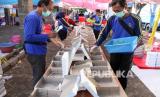 REPUBLIKA.CO.ID, SURABAYA -- Petugas menata paket makanan di dapur umum Kementerian Sosial di halaman Convention Hall Surabaya, Jawa Timur, Selasa (13/7/2021). Kementerian Sosial mendistribusikan 6.000 paket makanan siap saji setiap hari untuk memastikan terpenuhinya kebutuhan makanan dan nutrisi masyarakat selama masa PPKM Darurat di wilayah Surabaya, Sidoarjo, Gresik dan Bangkalan. ANTARA FOTO/Umarul Faruq/