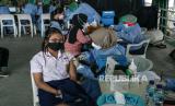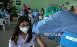 REPUBLIKA.CO.ID, UMBULLHARJO -- Siswa SMP mengikuti vaksinasi COVID-19 di halaman parkir Gembira Loka Zoo, Umbulharjo, Yogyakarta, Selasa (13/7/2021). Pemerintah Kota Yogyakarta menggelar vaksinasi COVID-19 untuk anak berumur 12-18 tahun dengan melakukan pendaftaran melalui aplikasi Jogja Smart Service.