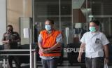 Sementara itu Tersangka Direktur PT Adonara Propertindo Tommy Adrian berjalan keluar usai menjalani pemeriksaan di Gedung Merah Putih KPK, Jakarta, Rabu (14/7/2021). Tommy diperiksa sebagai tersangka dalam kasus dugaan korupsi pengadaan lahan di Munjul, Kelurahan Pondok Rangon, Kecamatan Cipayung, Jakarta Timur tahun 2019.