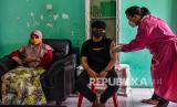 REPUBLIKA.CO.ID, MEDAN -- Warga menerima suntikan vaksin di rumahnya saat pelaksanaan vaksinasi COVID-19 dari pintu ke pintu (door to door) di Medan Helbetia, Medan, Sumatera Utara, Rabu (14/7/2021). Untuk mengurangi mobilitas warga di masa PPKM Darurat, Badan Intelijen Negara (BIN) menggelar vaksinasi COVID-19 dengan skema "door to door" ke rumah warga dengan target 1.000 orang per hari.