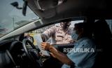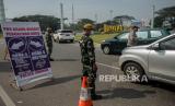 REPUBLIKA.CO.ID,BEKASI -- Petugas gabungan dari TNI, Polri dan Dinas Perhubungan melakukan pemeriksaan Surat Tanda Registrasi Pekerja (STRP) atau surat tugas pengemudi yang akan melintas di Tol Tambun, Kabupaten Bekasi, Jawa Barat, Kamis (15/7).