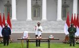 REPUBLIKA.CO.ID, JAKARTA -- Presiden Jokowi meluncurkan pemberian paket obat isolasi mandiri untuk pasien Covid-19 secara gratis kepada masyarakat di Istana Merdeka, Jakarta, Kamis (15/7).