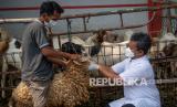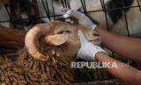 REPUBLIKA.CO.ID, JAKARTA -- Petugas Suku Dinas Ketahanan Pangan, Kelautan, dan Pertanian Jakarta Pusat memberikan obat tetes untuk mata seekor domba saat pemeriksaan kelayakan hewan kurban di Senen, Jakarta, Kamis (15/7/2021). Pemeriksaan tersebut dilakukan untuk menjamin kelayakan dan kesehatan hewan kurban untuk dikonsumsi serta mengetahui usia hewan yang layak untuk kurban.