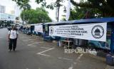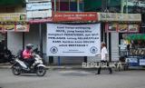Sejumlah spanduk dipasang oleh Paguyuban Pedagang Kaki Lima terkait dampak PPKM yang dirasakan para pedagang kaki lima (PKL) di Jalan Cikapundung Bandung Barat, Kota Bandung, Jumat (16/7). Spaduk tersebut berisi harapan kepada pemerintah agar ada kebijakan dan solusi untuk mengatasi masalah yang dihadapi para pedagang kecil seperti PKL di saat penerapan PPKM Darurat. (FOTO : Edi Yusuf/Republika)